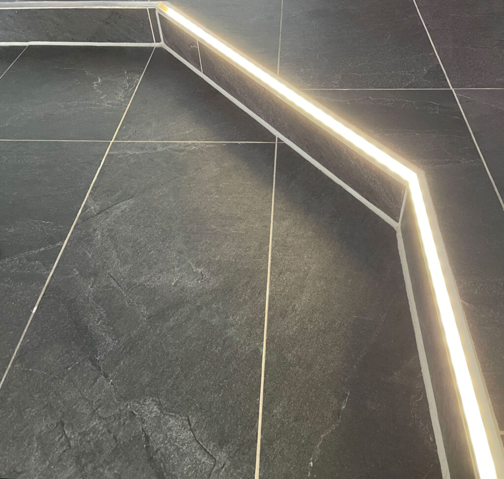 Besonderes Highlight ist die beleuchtete Stufe, die Funktion und Atmosphäre auf elegante Weise verbindet.